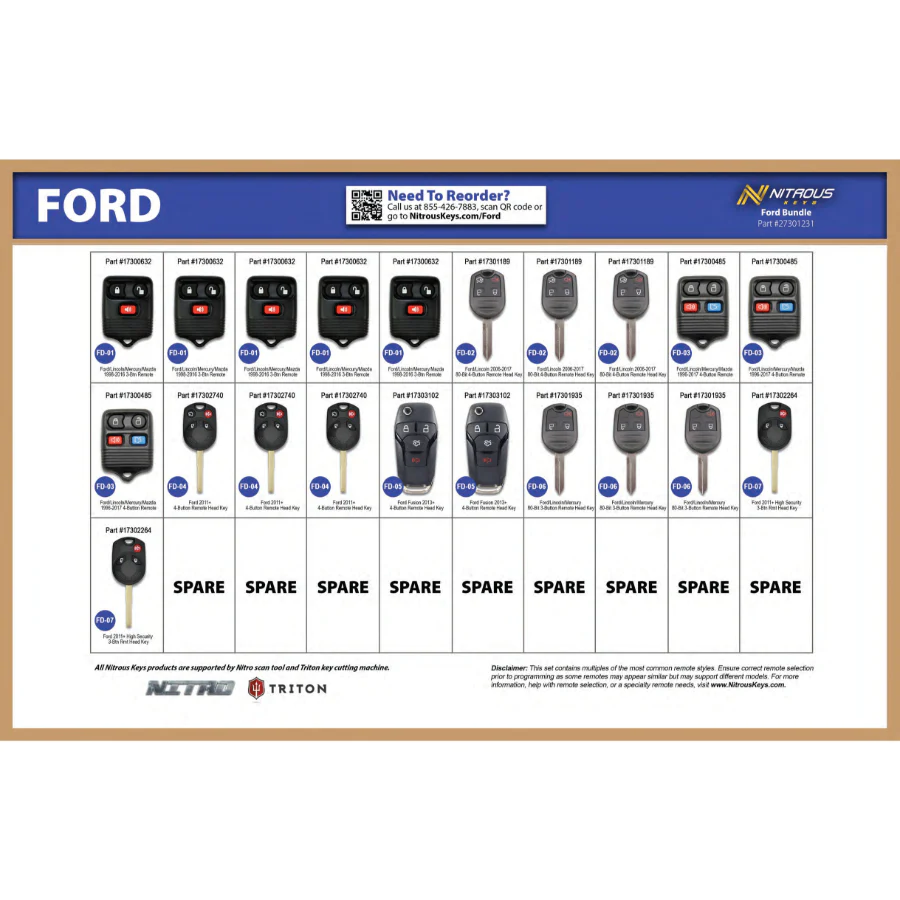 This starter bundle includes a selection of remotes compatible with a wide range of Ford, Lincoln, and Mercury vehicles. Perfect for automotive locksmiths and key programming professionals, this kit offers reliable coverage for common models across all three brands.