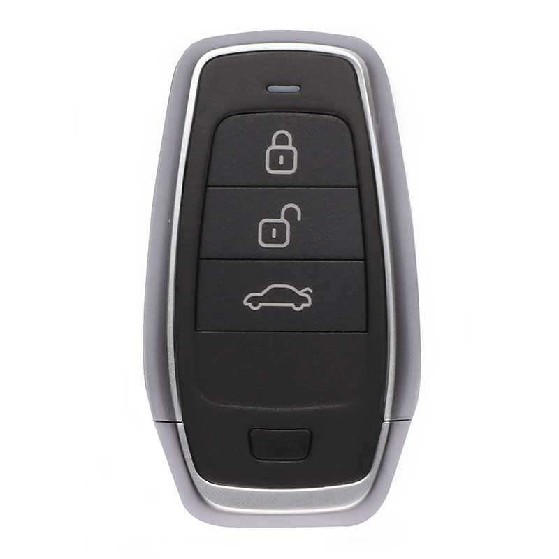 The Autel MaxiIM IKEYAT3T is a universal 3-button smart key with Lock, Unlock, and Trunk functions. Compatible with 315/415 MHz and 868/915 MHz systems across many vehicle makes. Program it easily with the Autel MaxiIM KM100. Offers ultra-long-range signal transmission up to 130 feet. Ideal for OE key replacement or spares. Battery (CR2032) and emergency blade not included. Backed by a 1-year limited warranty.