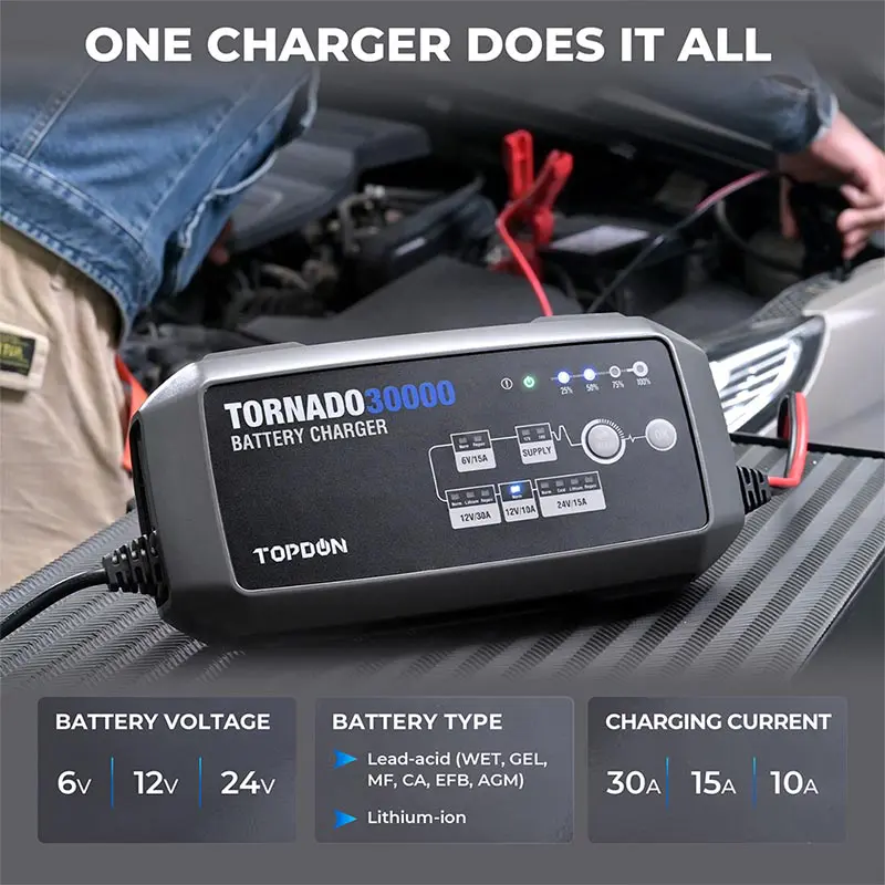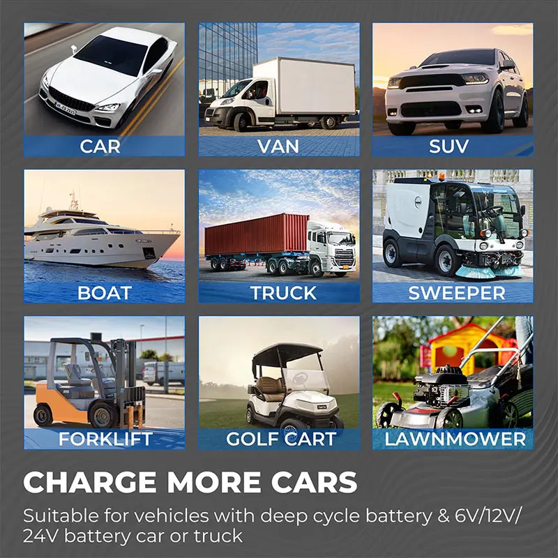 - Suitable for multiple battery types, including AGM, LI, WET, GEL, MF CAL, and EFB.