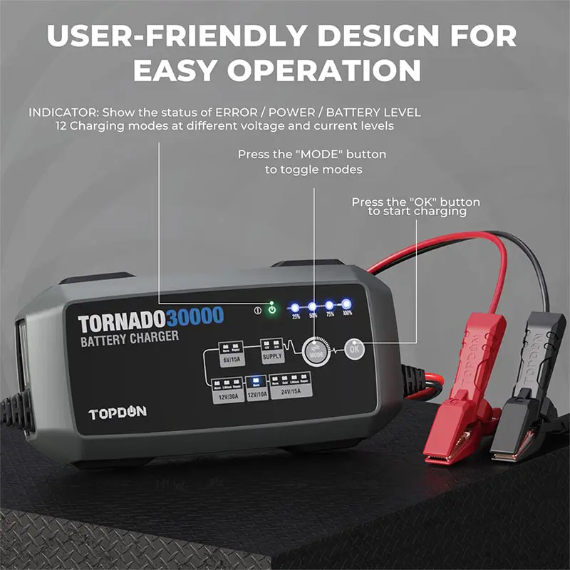 - Its 9-step smartcharging provides strong protection to the battery and the automatic charging and disconnection system eliminates any risk of overcharging. Use the NORM, COLD and REPAIR modes to automatically match the battery and extend its life.