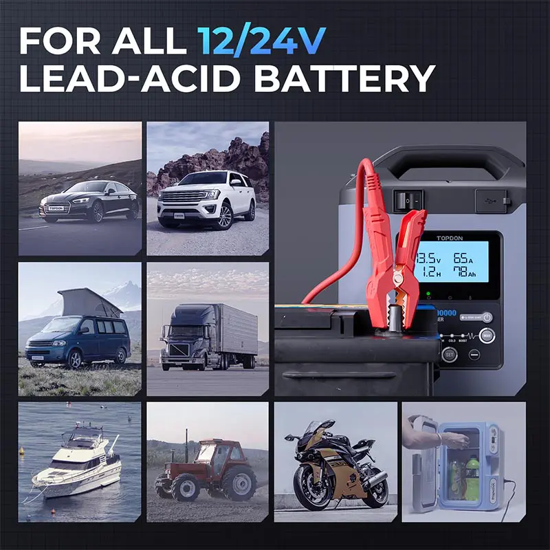 • Compatible with 12V & 24V lead-acid and lithium batteries (AGM, GEL, MF, EFB, etc.)